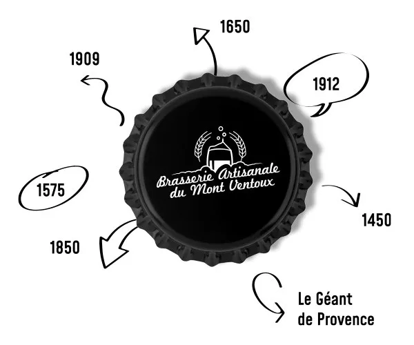 1912, 19O9, 185O, 165O, 1575, 145O et 1O5O… chacune correspond à l’altitude de l’un des cols ou sommets qui composent le massif. Sans oublier notre bière triple, Le Géant de Provence, imaginée à son image.